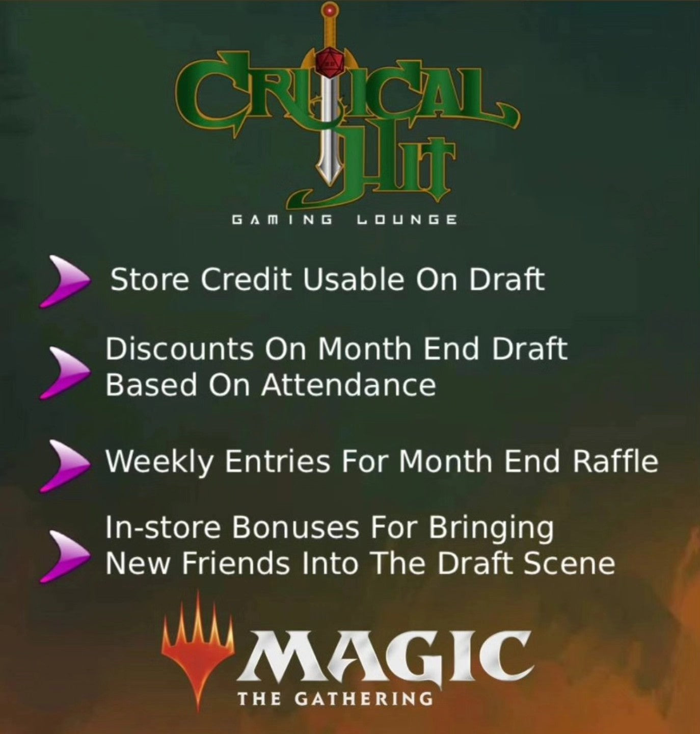 Join us on Thursday Nights at 6:30 PM for our draft format. We reveal the sets we're drafting early under our "Magic The Gatherin" tab.
